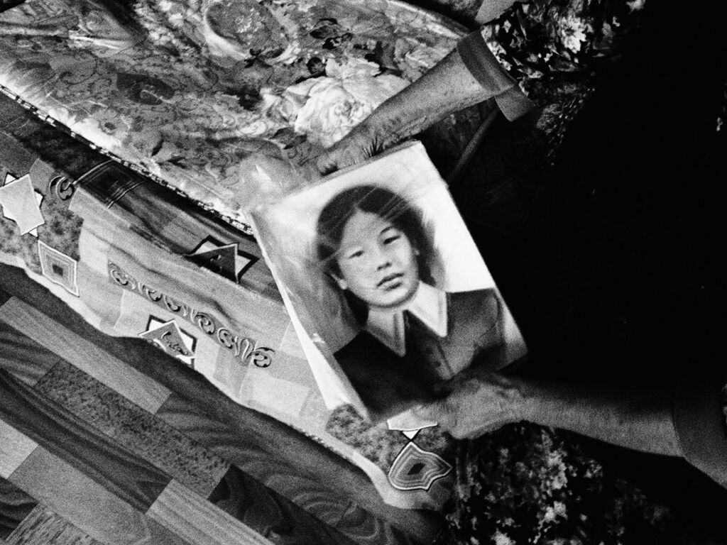 Галина отучилась три класса: нужно было нянчить сестренку, потому что мать целый день работала. Женщина достает из шкафа большую фотографию, завернутую в целлофановый пакет: девочка в школьной форме с черными косами смотрит прямо в объектив. В ссылке мама умудрилась пригласить фотографа, чтобы тот сделал фото дочери на память.
