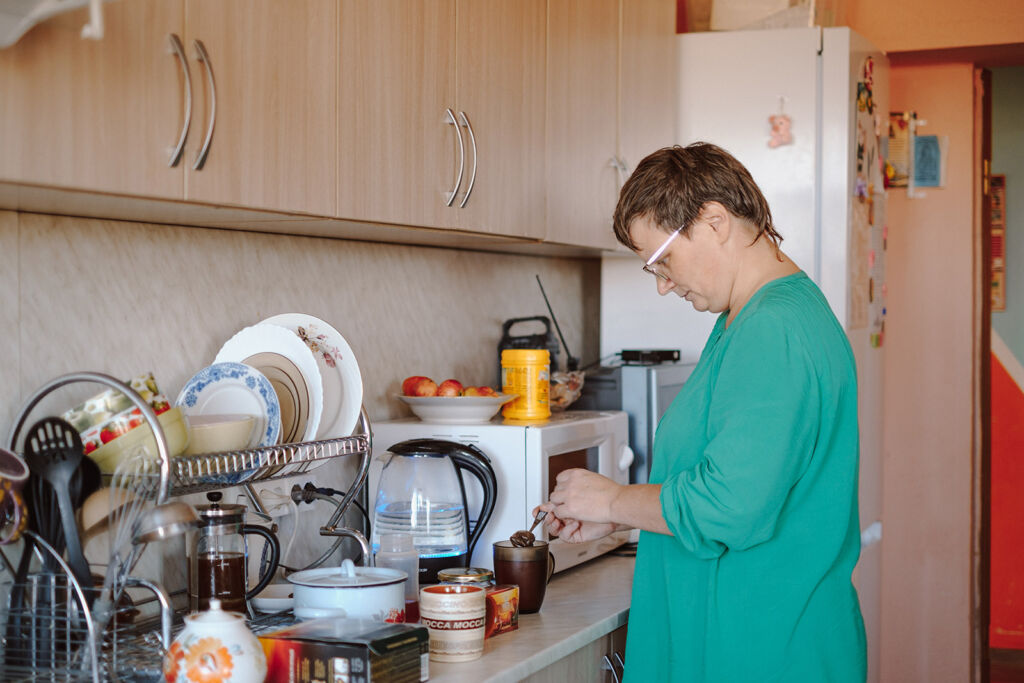 Сейчас она справляется сама, но старается по возможности поддерживать работу центра: участвует в генеральной уборке и вместе со Светланой, другой подопечной, проводит занятия по аэробике.