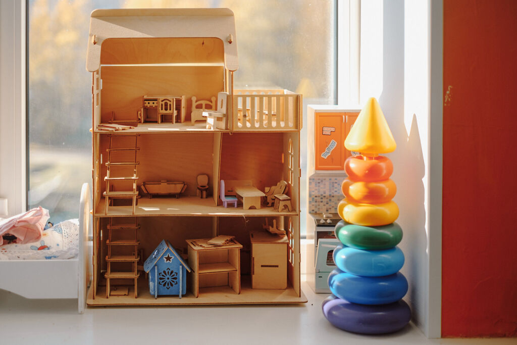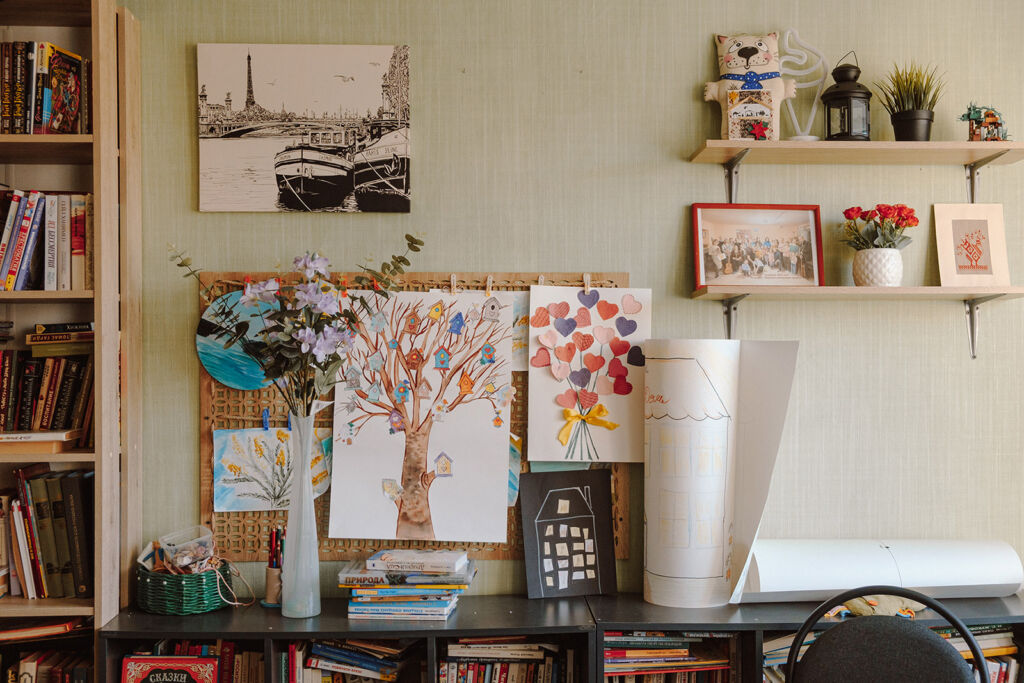 Мы заходим в игровую комнату: у стены стоит стеллаж с книгами и мягкие кресла, в углу — детская зона с плюшевыми игрушками, кукольными домиками и конструктором. Здесь проходят консультации с психологами для подопечных центра, мастер-классы и занятия с детьми — в «Мама-Доме» им уделяют много внимания.
