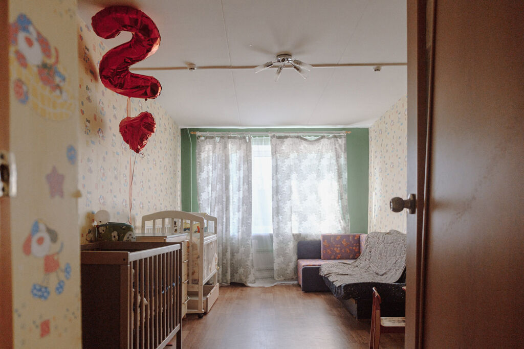 На стенах — детские обои со зверушками, на комодах приютились игрушки, у стен стоят двухъярусные кровати и колыбели. Людмила рассказывает, что местная компания, которая занимается химчисткой, подарила им большие ковры для игровой, а другая 一 кровати для жилых комнат. В одной из спален под потолком висят воздушные шарики — напоминание о минувшем дне рождения. Недавно в «Мама-Доме» был праздник, имениннице исполнилось два года.